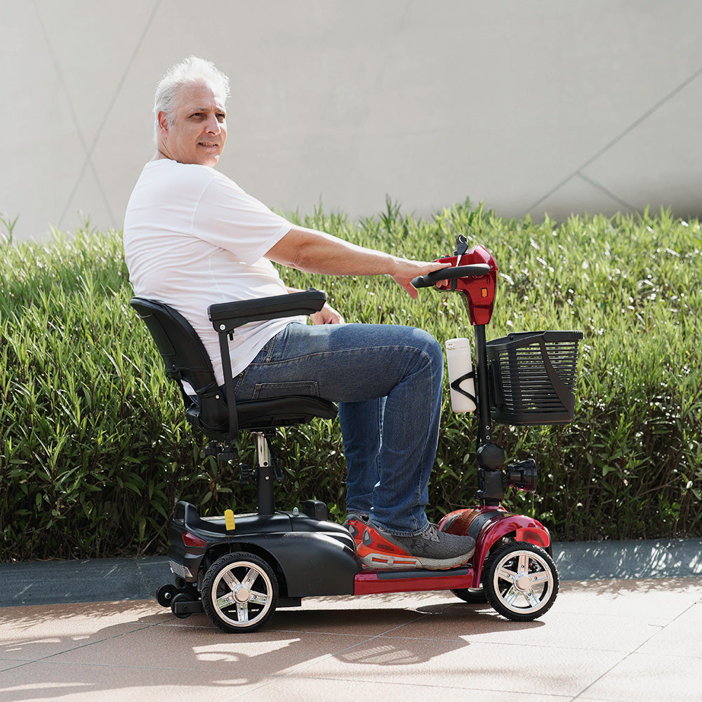 Uno scooter per disabili leggero e adatto agli anziani combina un comfort elevato con un'impressionante autonomia di lunga durata, consentendo viaggi prolungati senza ricariche frequenti. Progettato pensando alla sicurezza, offre stabilità migliorata e manovrabilità sicura, garantendo una guida fluida e sicura su vari terreni. Ideale per l'uso quotidiano, offre tranquillità e affidabilità, rendendolo la scelta perfetta per gli anziani che cercano indipendenza e facilità di mobilità.